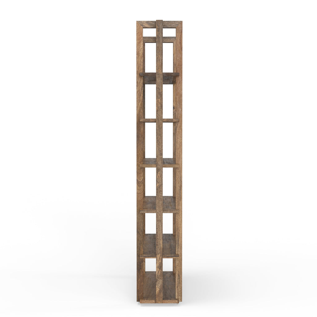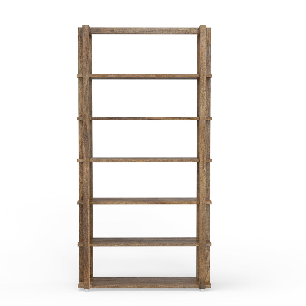 A natural fit for urban and suburban home décor, this bookcase offers casual luxury with a Boho vibe. The silhouette features architectural-inspired slatted lines while the transparent finish showcases the natural beauty of Mango wood. Organic yet refined, this bookcase boast both decorative and functional appeal.
